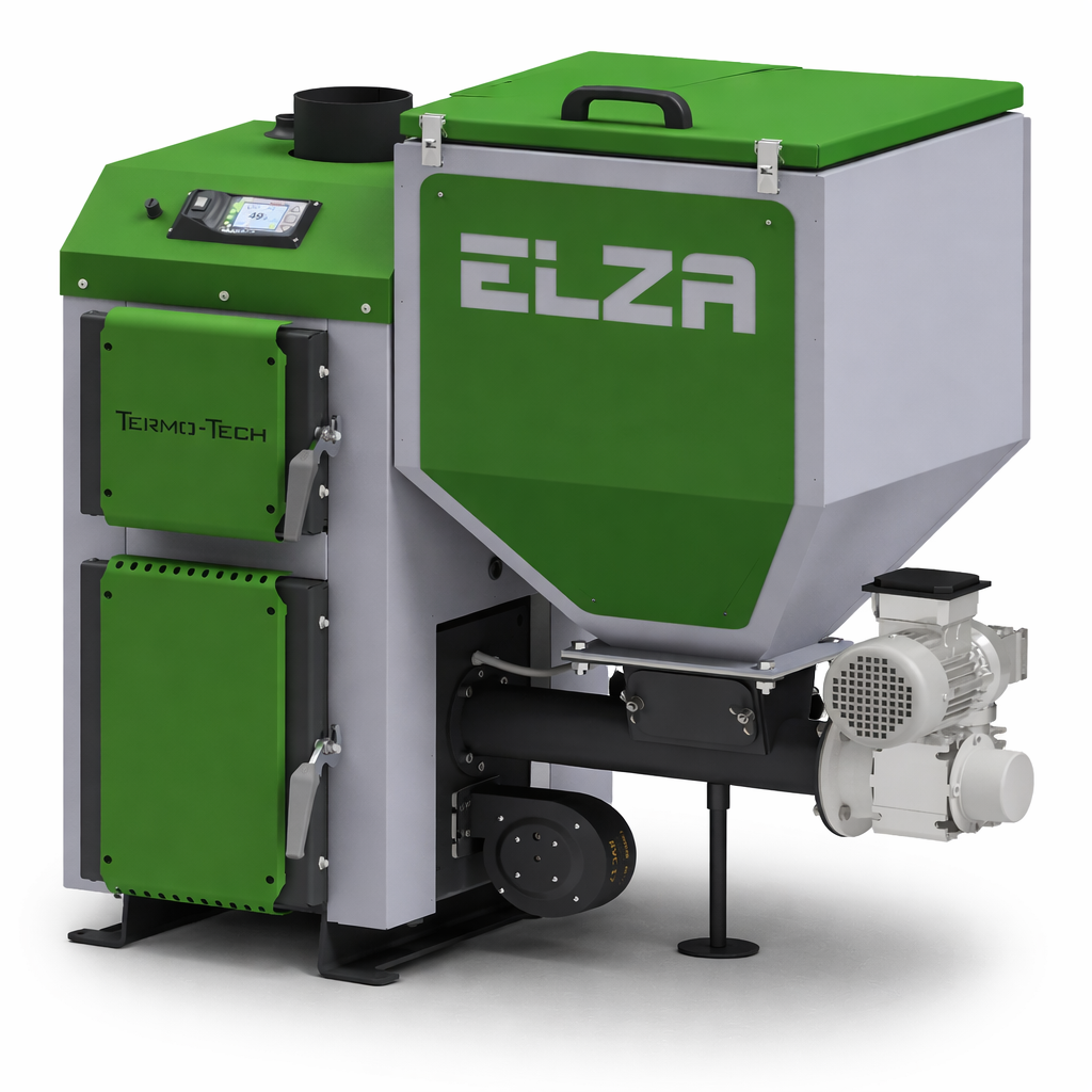 Kotły typu Elza z palnikiem retortowym, przeznaczone są do wodnych instalacji centralnego ogrzewania systemu otwartego, z grawitacyjnym jak i wymuszonym obiegiem wody. Instalacja musi być zabezpieczona zgodnie z obecnie obowiązującymi szczegółowymi przepisami krajowymi. Stalowe kotły grzewcze typu Elza z automatycznym układem podawania paliwa są przeznaczone do pracy w instalacjach centralnego ogrzewania i przygotowania ciepłej wody użytkowej w obiektach budownictwa mieszkaniowego tj. domach jednorodzinnych, pawilonach handlowych, garażach, gospodarczych. Kotły stanowią konstrukcję stalową spawaną z atestowanych blach kotłowych o grubości 6 mm, gwarantujących długotrwałe użytkowanie. Sterownik obsługuje pompy: c.o., c.w.u. i pompę dodatkową. Możliwość podłączenia regulatora pokojowego, modułu SafeIT (sterowanie przez Internet) oraz modułu Aligator (sterowanie siłownikiem zaworu).