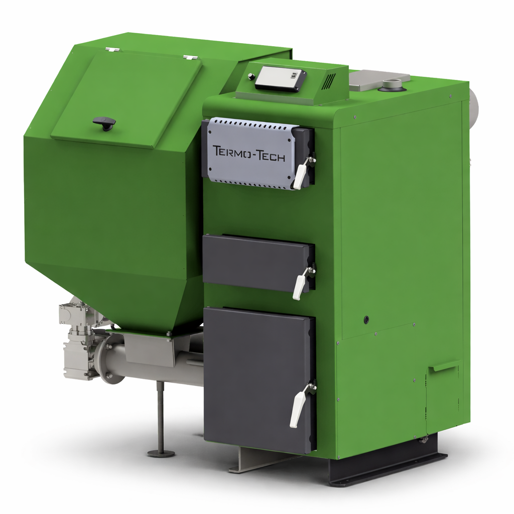 Kotły typu KRS Tech Duo z palnikiem retortowym, przeznaczone są do wodnych instalacji centralnego ogrzewania systemu otwartego, z grawitacyjnym jak i wymuszonym obiegiem wody. Instalacja musi być zabezpieczona zgodnie z obecnie obowiązującymi, szczegółowymi przepisami krajowymi. Stalowe kotły grzewcze typu KRS Tech Duo z automatycznym układem podawania paliwa są przeznaczone do pracy w instalacjach centralnego ogrzewania i przygotowania ciepłej wody użytkowej w obiektach budownictwa mieszkaniowego tj. domach jednorodzinnych, pawilonach handlowych, garażach, budynkach gospodarczych. Kotły stanowią konstrukcję stalową spawaną z atestowanych blach kotłowych o grubości 6 mm, gwarantujących długotrwałe użytkowanie. Przeznaczone są do spalania ekogroszku o granulacji 5-25 mm. Sterownik obsługuje pompy: c.o., c.w.u. i pompę dodatkową oraz siłownik zaworu. Możliwość podłączenia regulatora pokojowego oraz modułu SafeIT (sterowanie przez Internet).